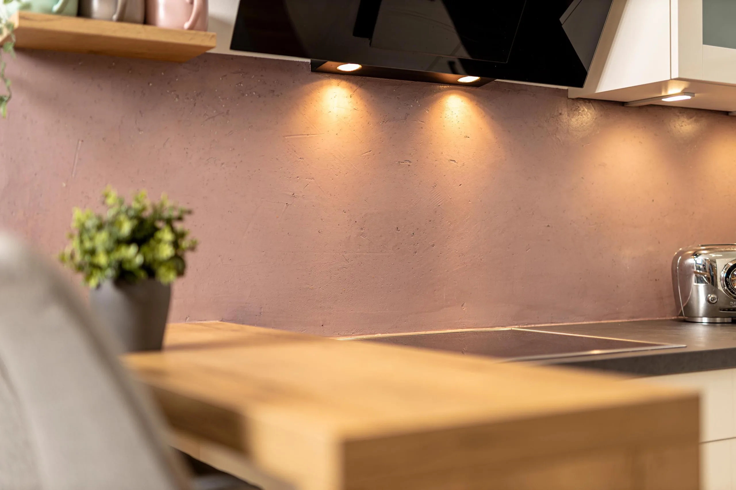 Veredelt mit unterschiedlichen Effektölen– und Pasten entstehen einzigartige Akzente mit wunderbaren Oberflächeneffekten, durch die die Grundfarbe der Spachtelung noch durchschimmert. Besonders durch den natürlichen Lichteinfall variiert das Erscheinungsbild je nach Betrachtungswinkel.