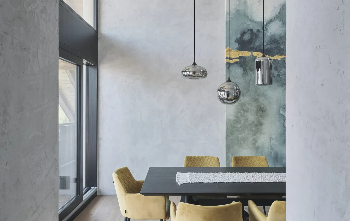 Mit aufeinander abgestimmte Marmormehle und andere anorganische Füllstoffe und Zuschlagselementen ist der Designputz für die kreative Wand- und Deckengestaltung im Innenbereich geeignet.