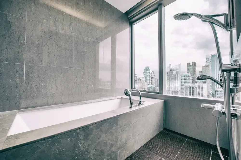 großformatige Fliesen in Badezimmer